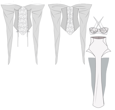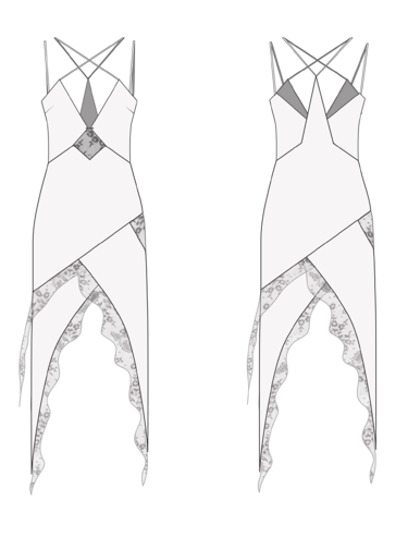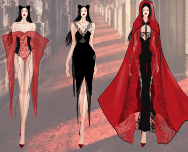 explores the transition from intimate lingerie to powerful eveningwear. Using lace, chiffon, and sheer mesh in a striking red and black palette, the collection highlights sensuality, transparency, and the evolving strength of femininity.